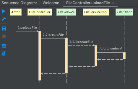 文件上传的调用的 UML 时序图如下所示: